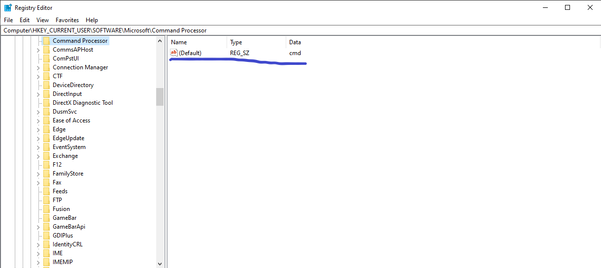 按 windows+r 打开注册表编辑器,然后键入 regedit,然后在搜索栏中按 enter 键粘贴下面的行HKEY_CURRENT_USER\Software\Microsoft\Command Processor\
