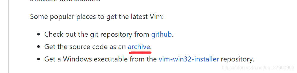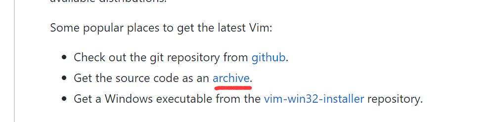 点击 “archive” 即可进入。(链接 “https://github.com/vim/vim/releases”)之后选择版本下载即可。wget https://github.com/vim/vim/archive/v8.1.1766.tar.gz