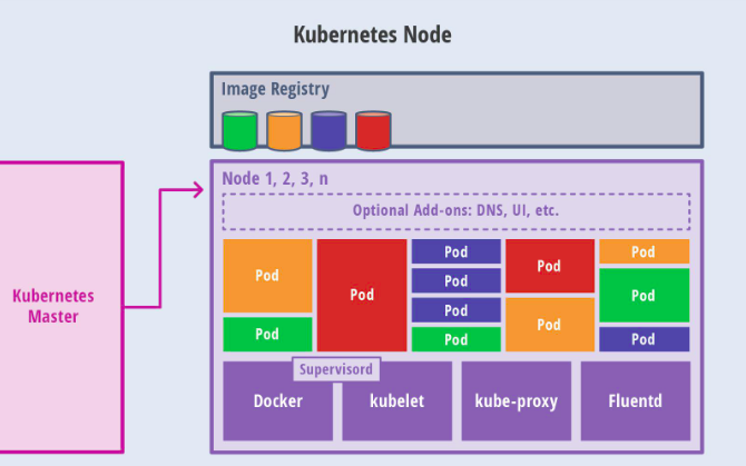 Kubernetes Node运行节点,运行管理业务容器,包含如下组件: